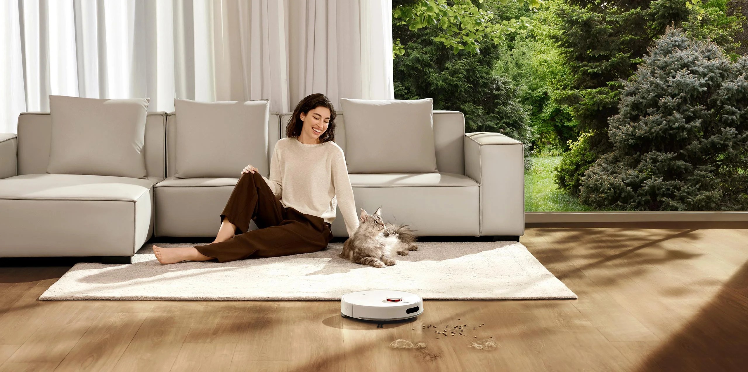 Главная и боковые щётки с V-образным дизайном и «расчёской» эффективно собирают длинные и короткие волосы, предотвращая их наматывание. Это особенно полезно для домов с питомцами.