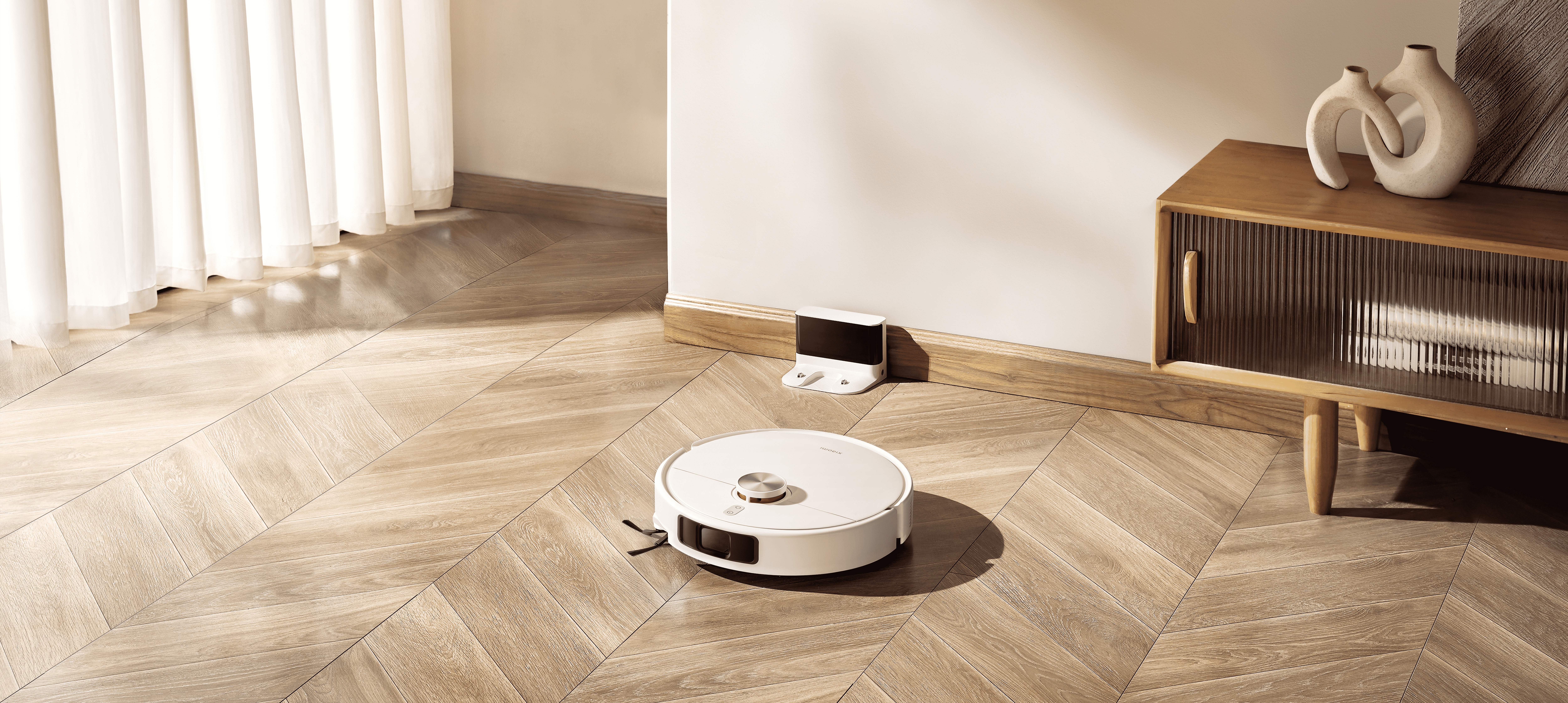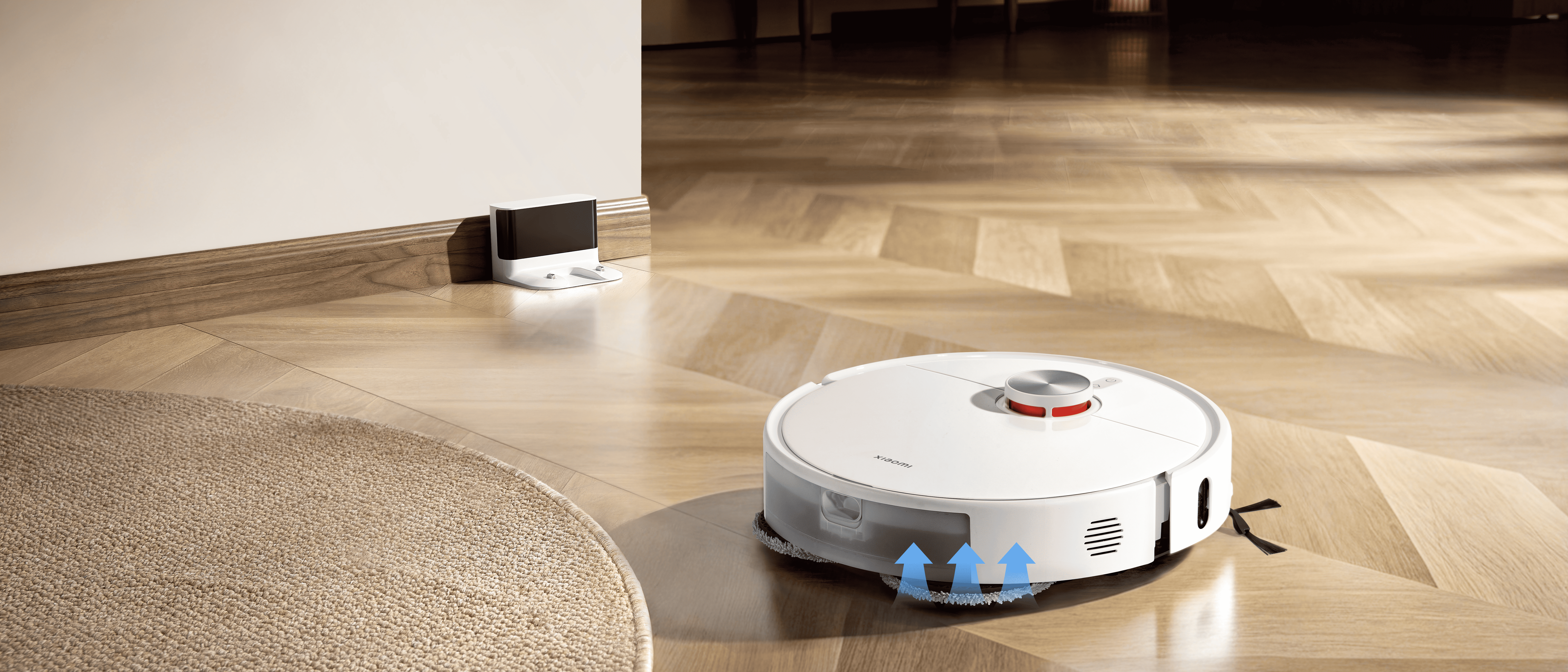 Xiaomi Robot Vacuum S40 Pro — это современный пылесос-робот в элегантном белом корпусе с оранжевыми акцентами, подчёркивающими его премиальный вид. Компактные габариты (высота всего 9,9 см) позволяют устройству легко проходить под мебелью, а круглая форма обеспечивает эффективное движение по дому и уборку в труднодоступных местах.