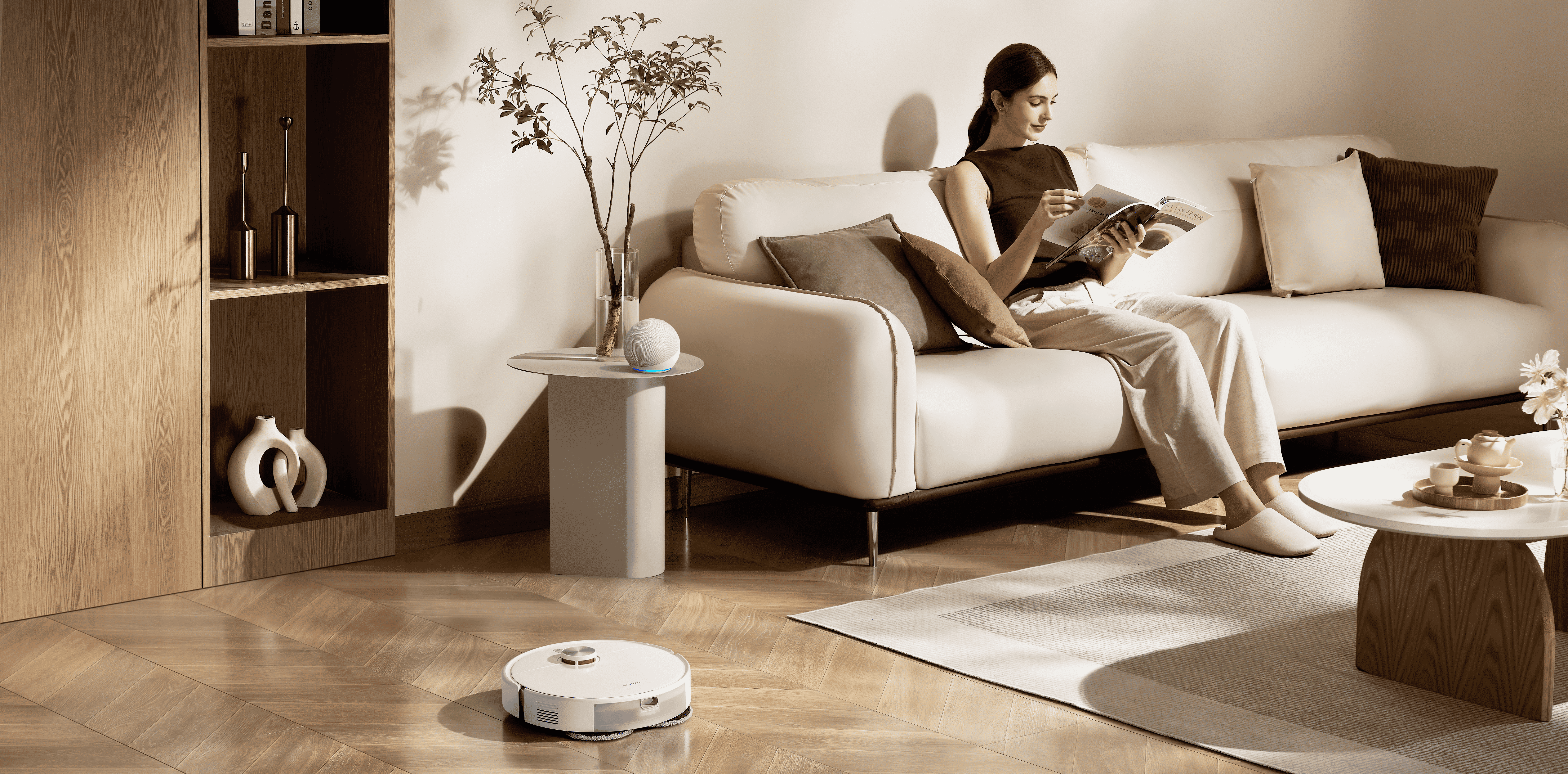 Модель поддерживает голосовое управление и интеграцию с умным домом. Также предусмотрены функции ограничения зон уборки, планирования по времени и тихого режима с уровнем шума всего 65 дБ, что позволяет использовать пылесос даже ночью.